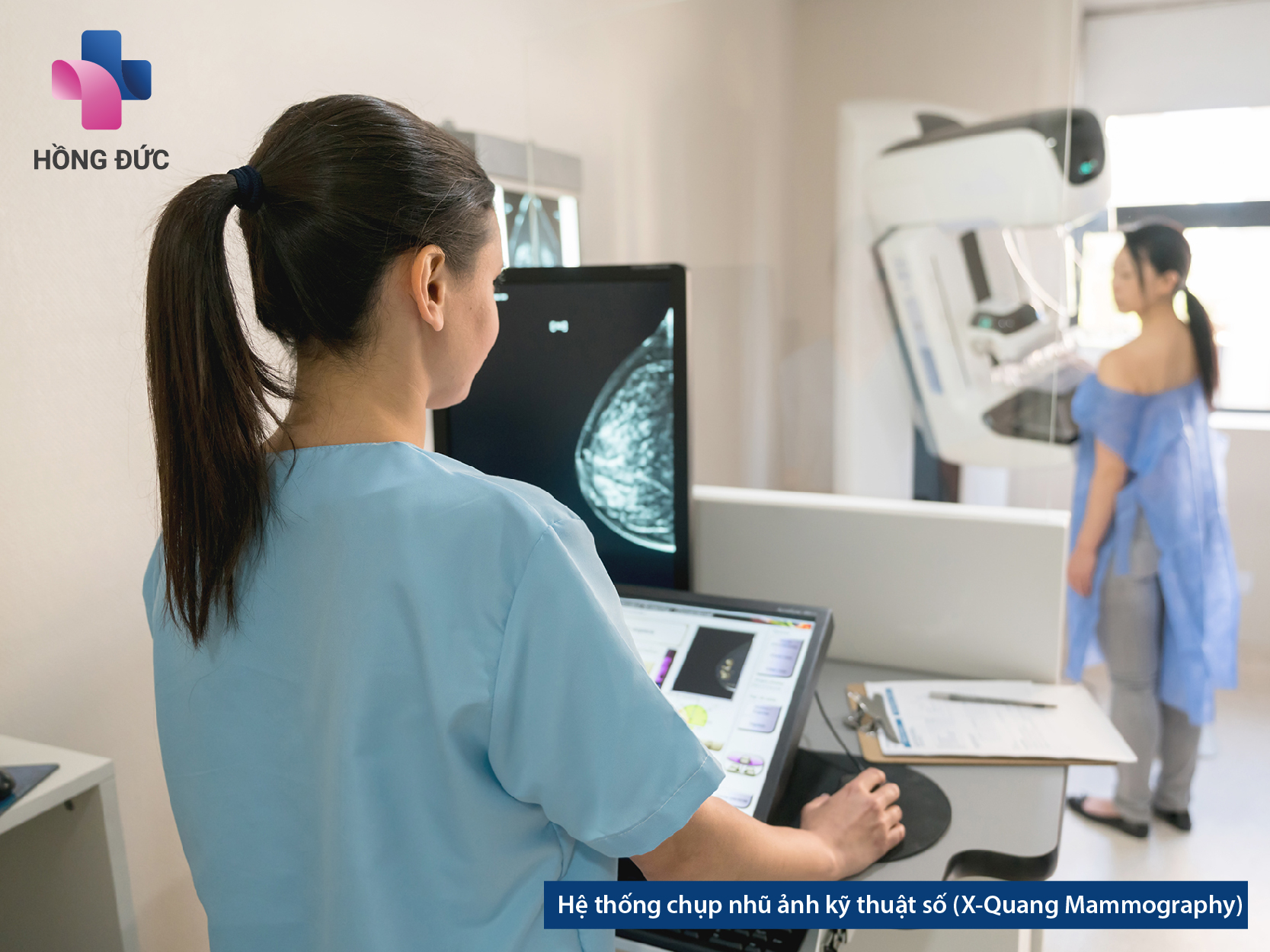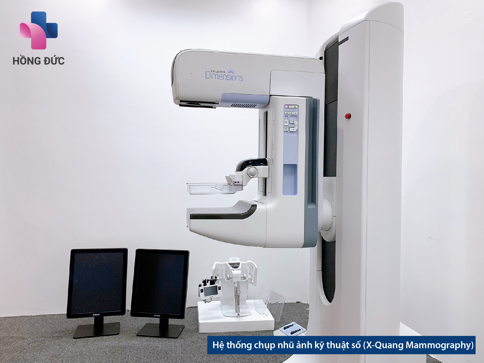 Phòng khám Đa khoa Hồng Đức hợp tác với các chuyên gia hàng đầu tại Đại học Y Hà Nội đầu tư Trung tâm Chẩn đoán hình ảnh kỹ thuật cao. Theo đó, Trung tâm được đầu tư Hệ thống Chụp nhũ ảnh kỹ thuật số (X-Quang Mammography) do hãng GE – Healthy của Mỹ sản xuất với một số thông tin sau: Mục đích chính: Mammography giúp phát hiện sớm các biểu hiện của ung thư vú, bao gồm các khối u nhỏ và biểu hiện tiền ung thư. Điều này cho phép điều trị sớm và tăng cơ hội hồi phục hoàn toàn. Nguyên tắc hoạt động: Hệ thống mammography sử dụng tia X để chụp ảnh của vùng ngực. Bức ảnh này sau đó được hiển thị trên màn hình cho bác sĩ chẩn đoán xem xét. Áp dụng và tiến hành kiểm tra: Thủ tục mammography thường đơn giản và không đau đớn. Người bệnh được yêu cầu đứng trước máy chụp X-Quang và vùng ngực của họ được ép giữ giữa hai tấm nén để tạo hình ảnh chính xác. Bức ảnh sẽ được chụp từ nhiều góc độ khác nhau để phát hiện các biểu hiện bất thường. Quy trình đọc và chẩn đoán: Bức ảnh mammography sẽ được bác sĩ chuyên khoa đọc và đánh giá. Nếu có bất kỳ dấu hiệu nào của ung thư vú, có thể cần đến các xét nghiệm bổ sung như siêu âm vùng ngực hoặc biopsi. Tầm quan trọng của mammography: Hệ thống chụp X-Quang mammography đóng một vai trò quan trọng trong chăm sóc sức khỏe phụ nữ, đặc biệt trong việc phát hiện sớm bệnh ung thư vú. Việc thực hiện kiểm tra mammography đều đặn là một phần quan trọng của chăm sóc sức khỏe cho phụ nữ, đặc biệt là sau tuổi 40 hoặc nếu có yếu tố nguy cơ gia đình.
