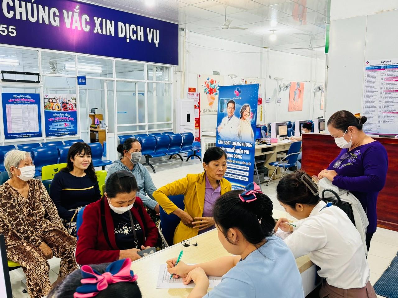 Cuối tuần vừa qua, PKĐK Hồng Đức đã triển khai chương trình đo loãng xương, tư vấn và cấp thuốc miễn phí cho các khách hàng nữ của Khóm 3 Hội phụ nữ phường Tân Thành. Đây là một hoạt động ý nghĩa nhằm giúp bà con kiểm tra được tình trạng sức khỏe xương, phát hiện sớm những nguy cơ mắc loãng xương và bảo vệ xương khớp trước nguy cơ tổn thương.
